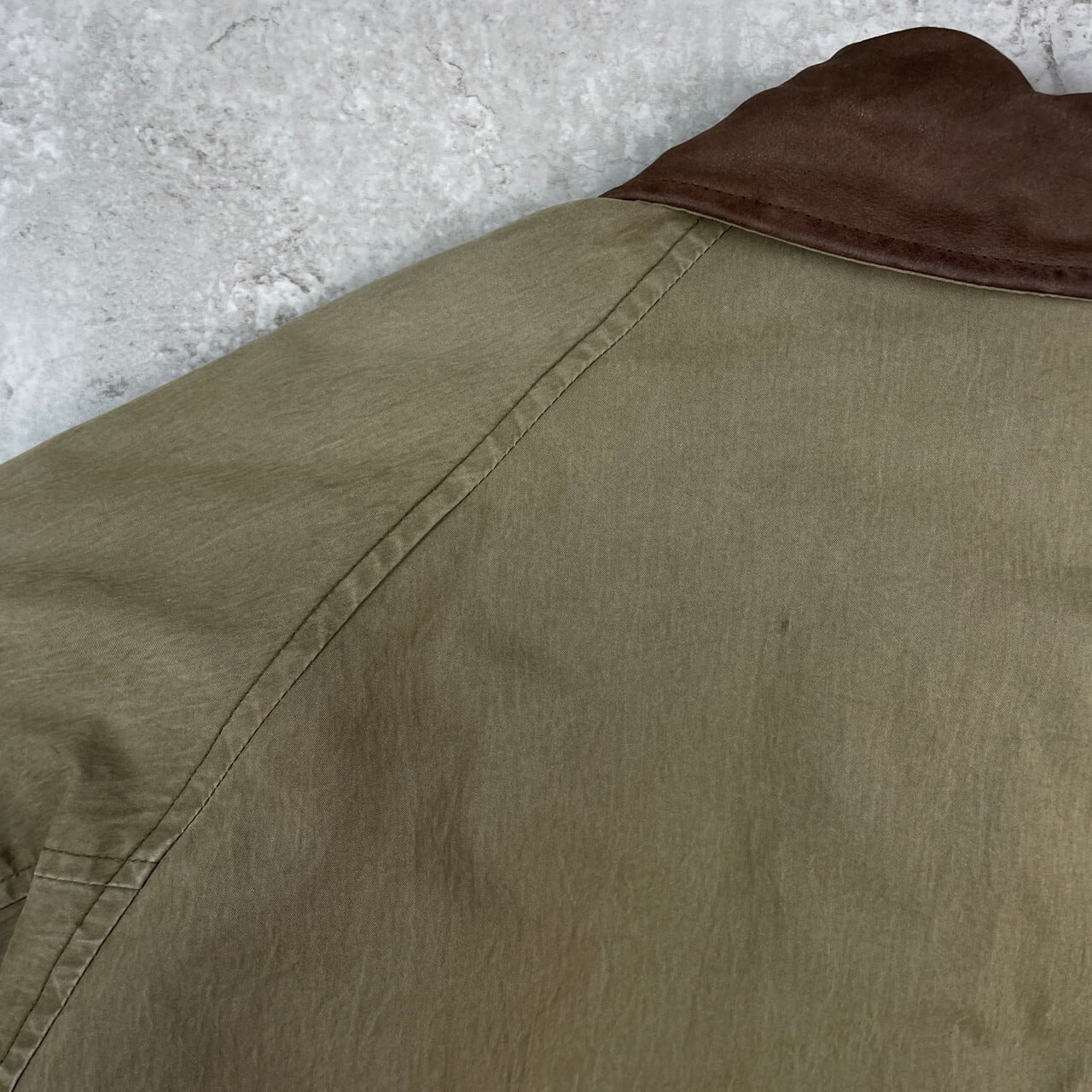 ■90年代 Timberland ティンバーランド WATERPROOF 襟レザー スイングトップ メンズXL相当 古着 90s VINTAGE ヴィンテージ ウールライナー 中綿入り ブルゾン【ナイロンジャケット】/カーキグリーン 【ブランド】 Timberland ティンバーランド 【サイズ】表記 M(着用感メンズXL相当) ※計測値をご確認ください。 着丈…66 身幅…64 裄丈…91 袖丈(脇下計測)…58 【生産国】中国製 【素材】コットン74% ナイロン26% 裏地 ウール80% ナイロン20% 【状態】フロント・バック・袖・襟などに汚れ、両袖口に破れがございます。 画像にてご確認ください。 【c251012007】 ※古着は洗濯、検品などのケアを行っております。(新品・デッドストックは洗濯していません。) ※モニターの発色により実物と異なる場合がございます。予めご了承ください。 ※ 海外直輸入USED品になります。