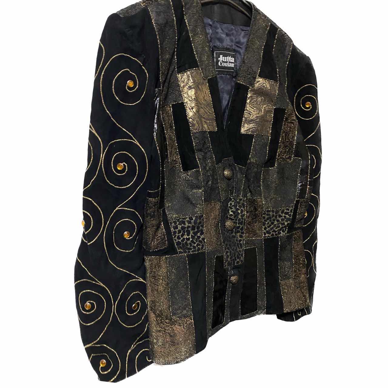70s 棒zip Art Nouveau柄 リメイク、ポケット ブルゾン L