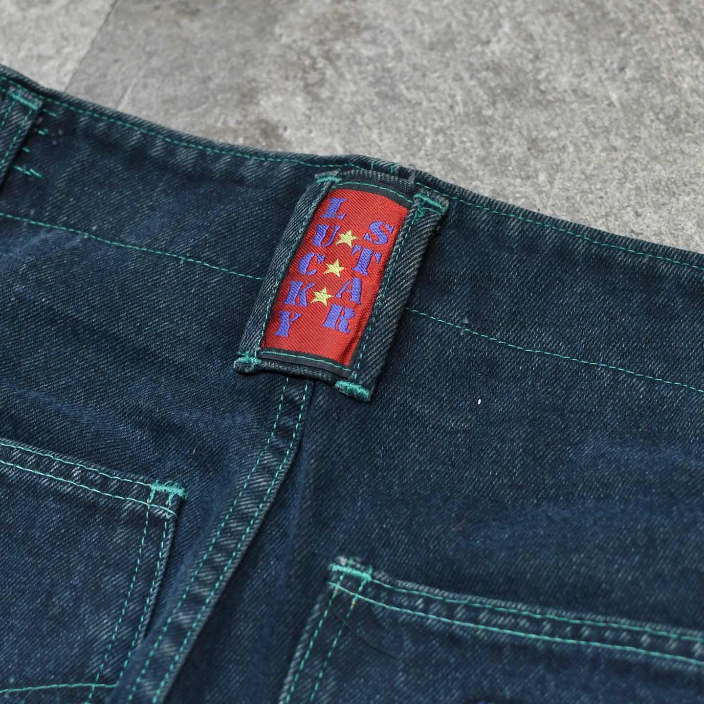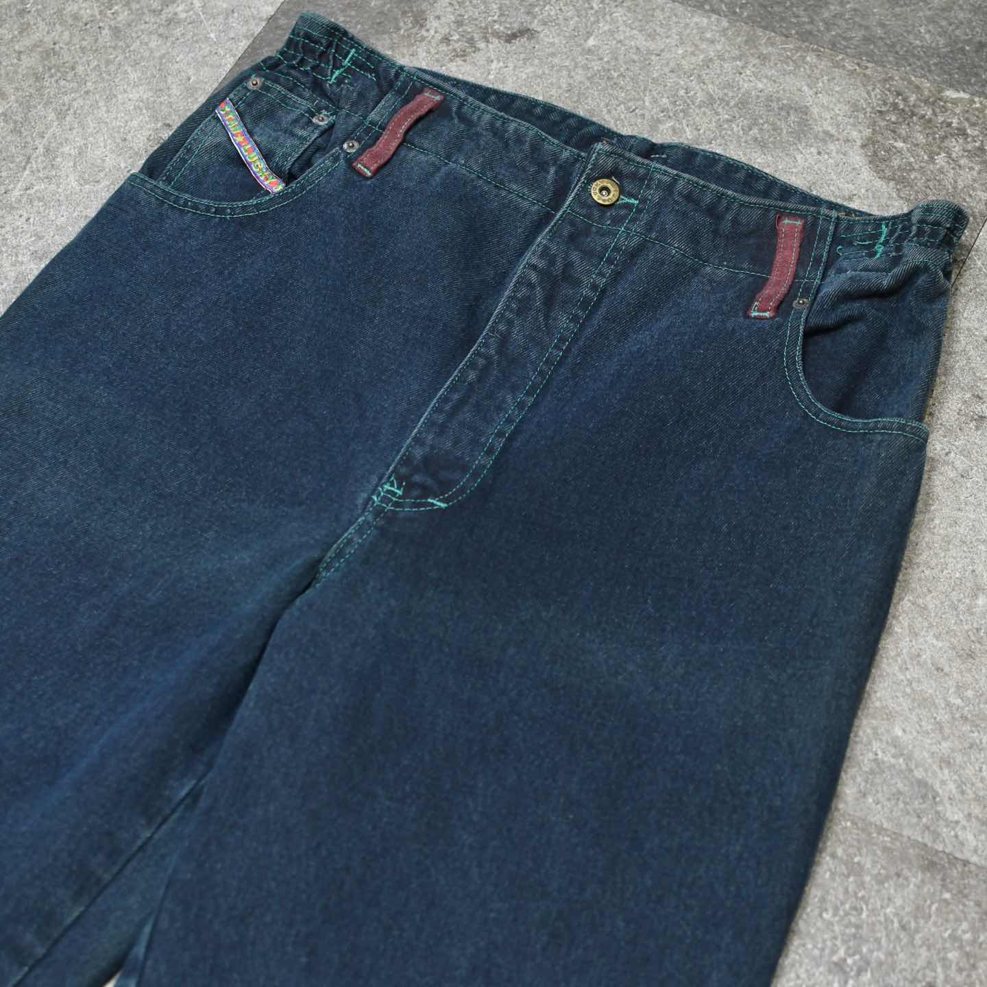 古着 グリーン デニム デニムパンツ ユーロ古着 デザインパンツ