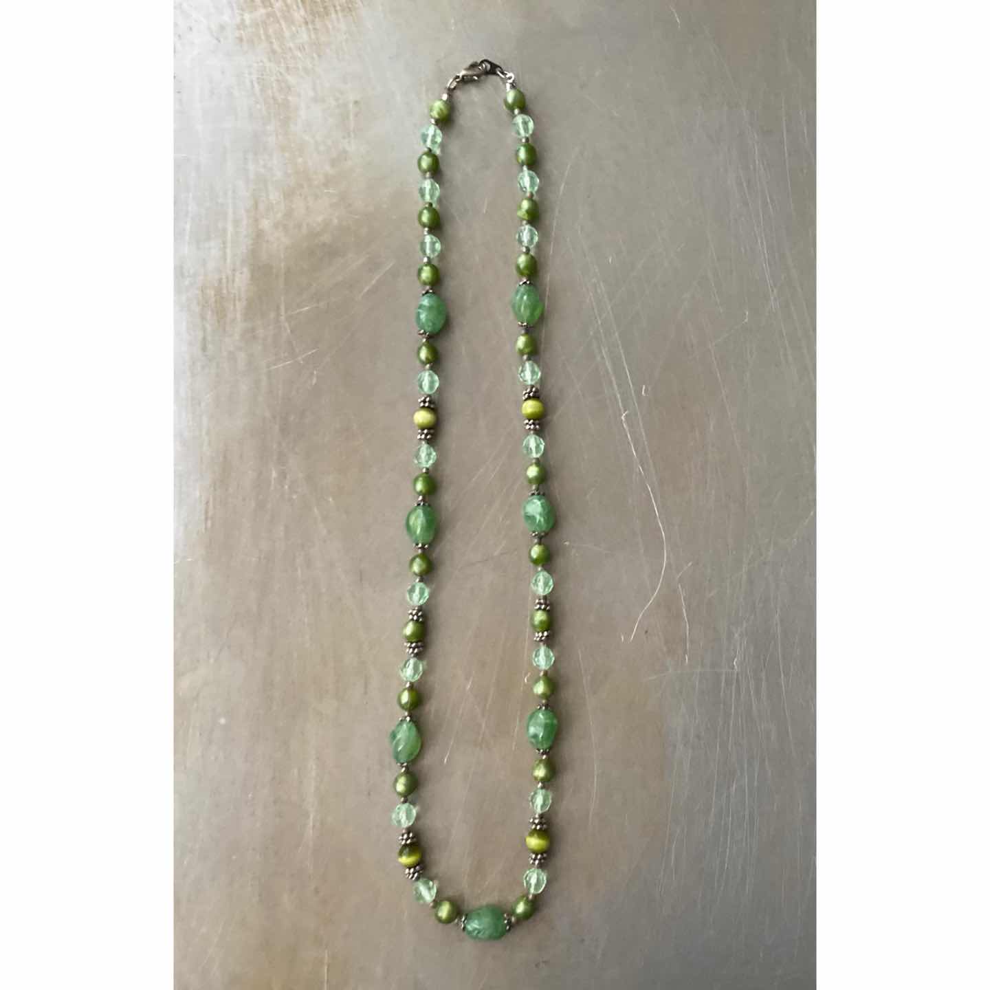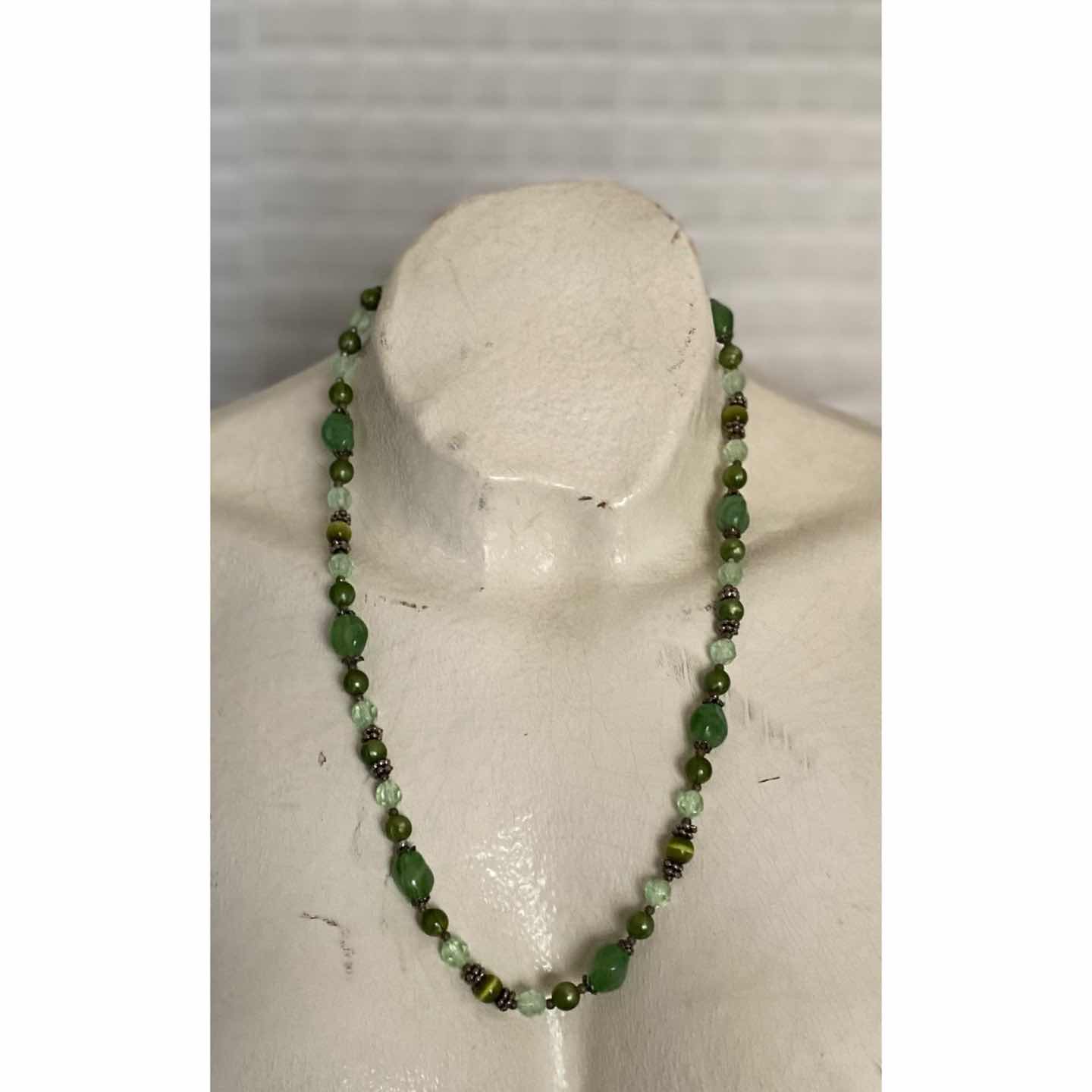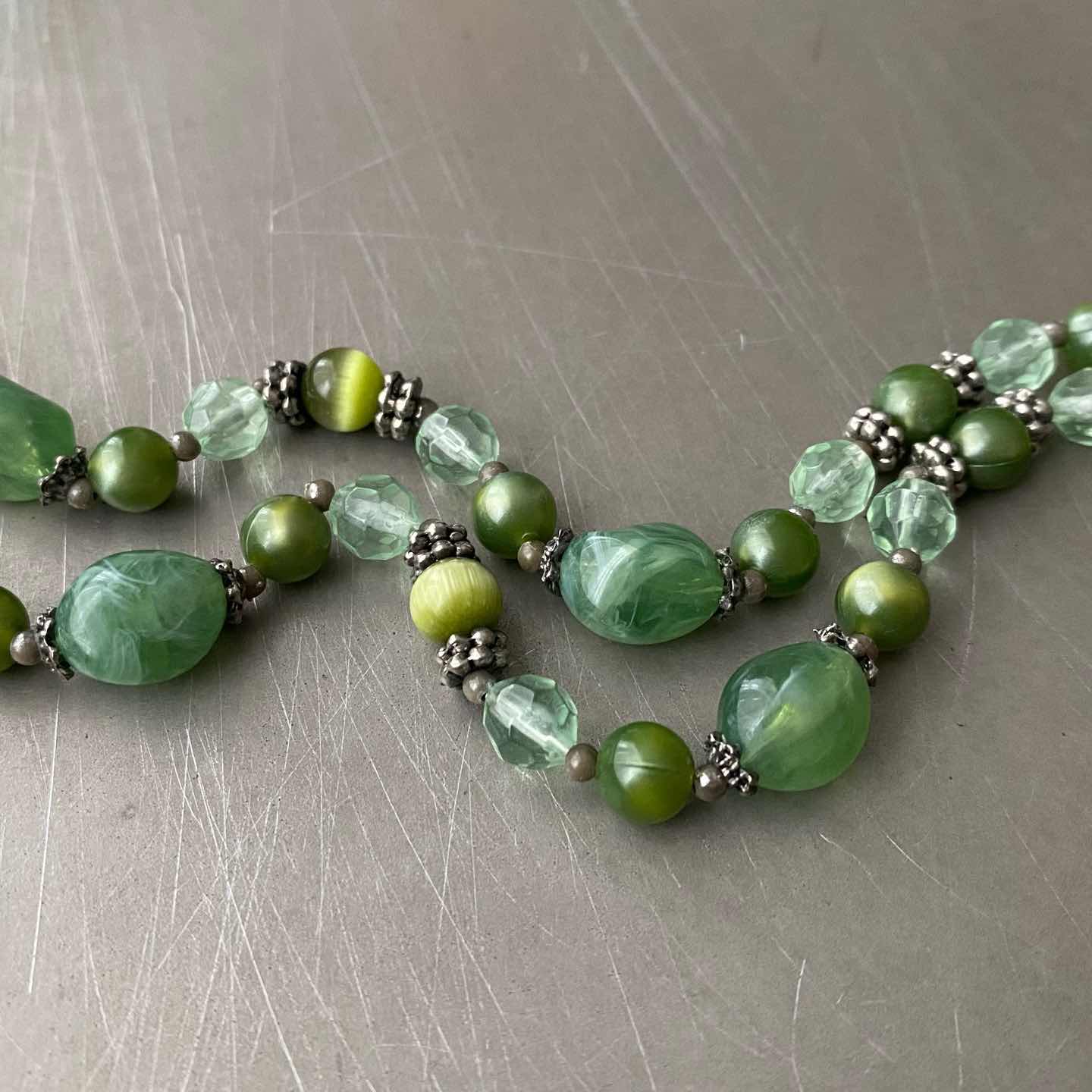 レトロなグリーンのビーズが可愛らしいUSAヴィンテージネックレス。スタイリングに取り入れやすい長さでお顔まわりを明るく彩ってくれます。 □Materials メタル(シルバーメッキ)、プラスチックビーズ □Size 全長 約65.5㎝ 幅 約1.1㎝ 31g □Condition【B】 経年によるメタルの変色はみられますが、目立ったダメージの無い良好な状態です。中古品であることをご理解のうえお買い求めください。ご購入前に必ずショッピングガイドのご確認をお願いいたします。 【S】未使用 【A】未使用に近い 【B】やや使用感あり 【C】使用感あり Item No.3547