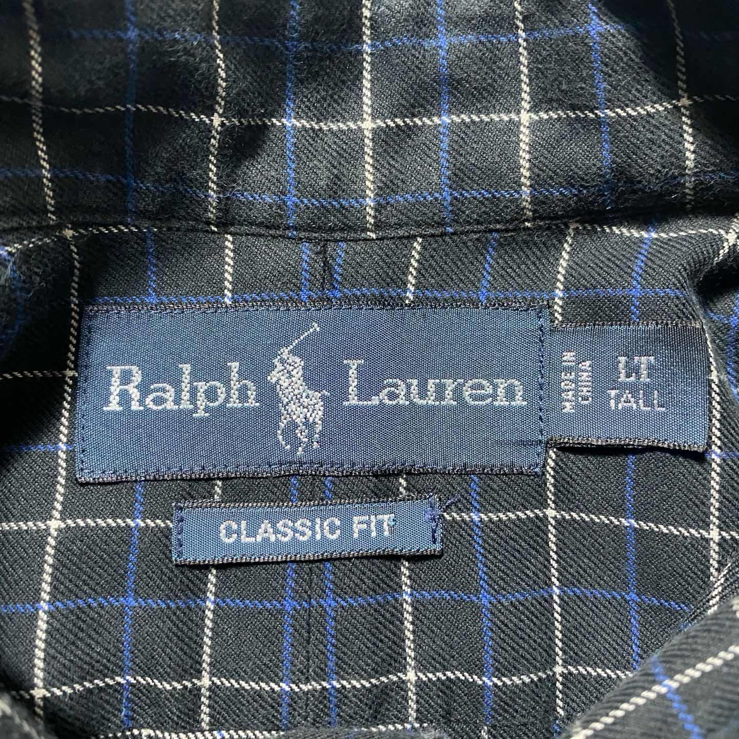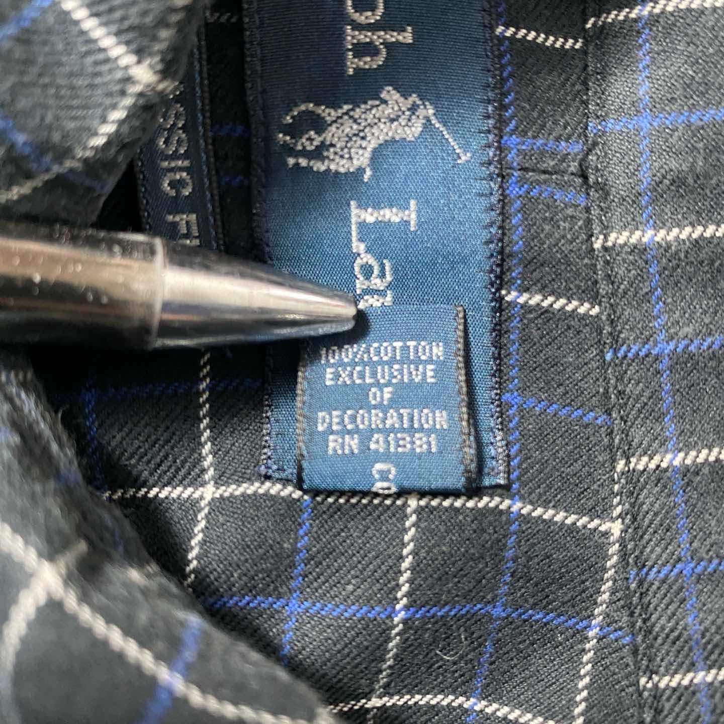 00sラルフローレン 刺繍ロゴ ポニー チェック総柄 ボタンダウン ネルシャツ
