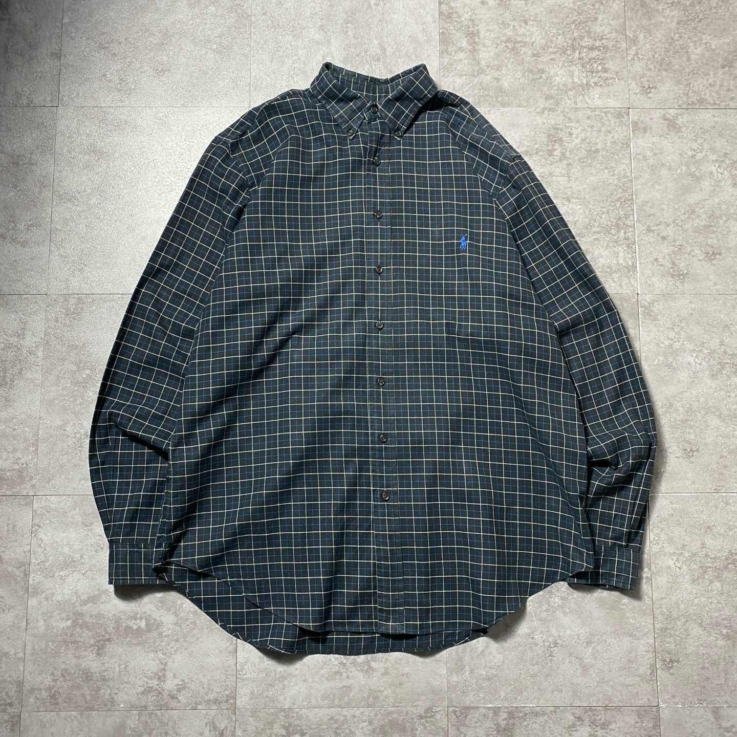00s ラルフローレン 刺繍ロゴ ポニー チェック総柄 ボタンダウンシャツ