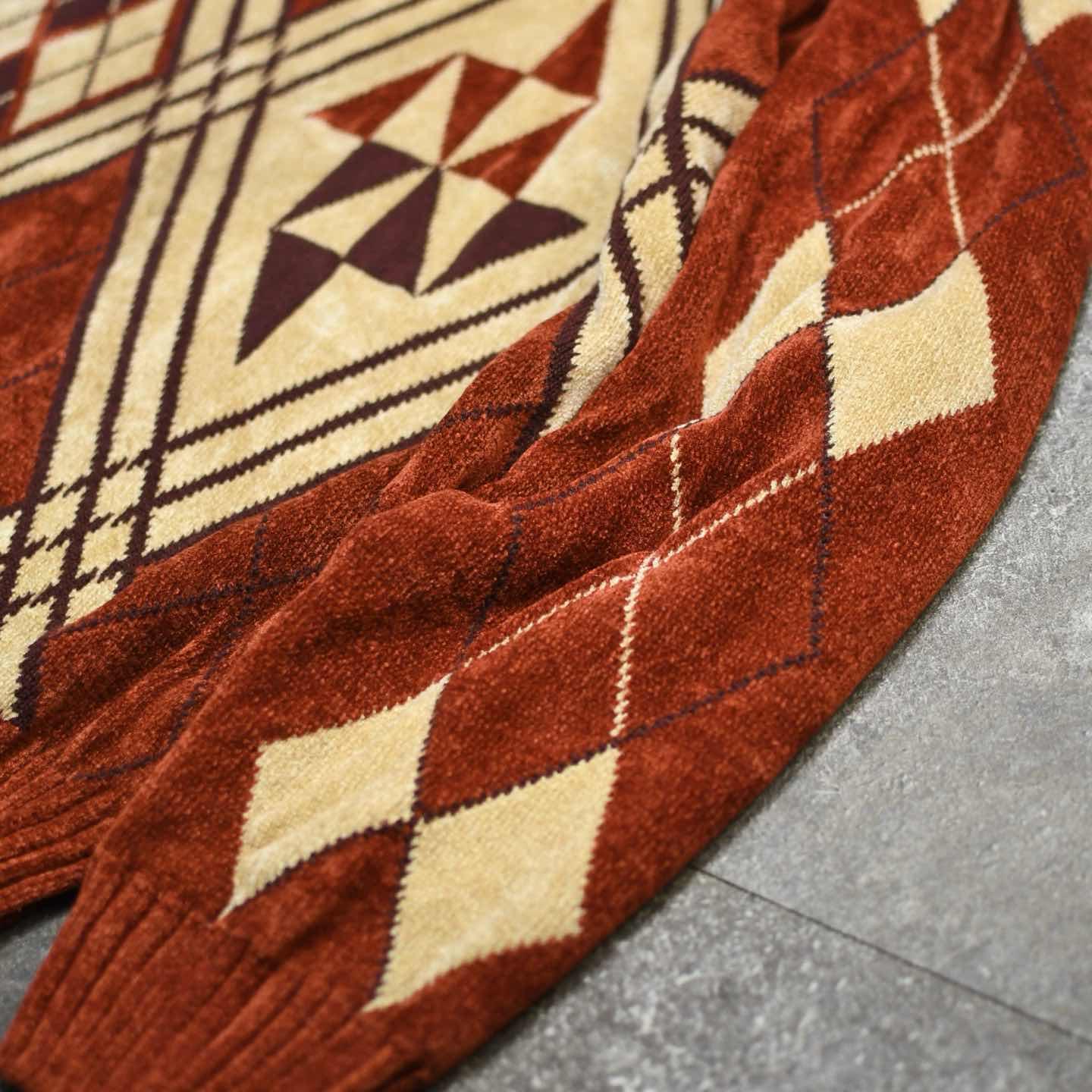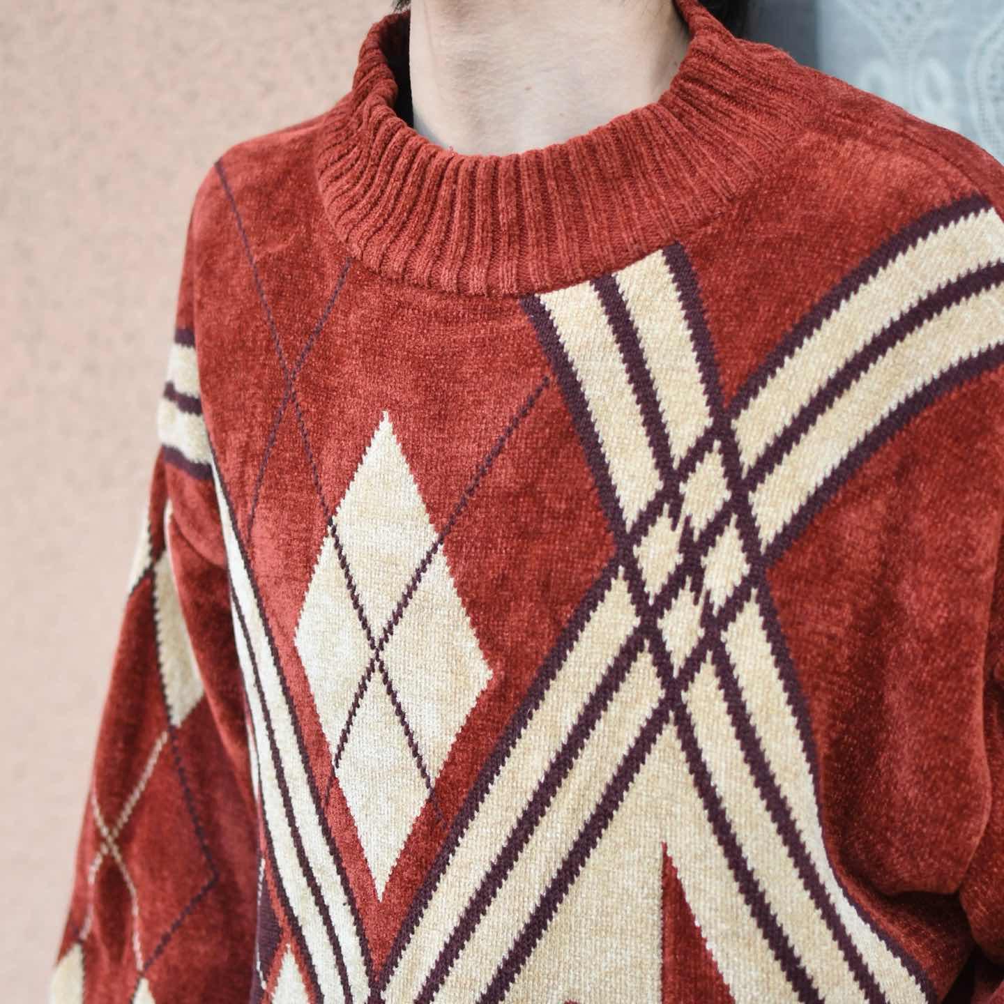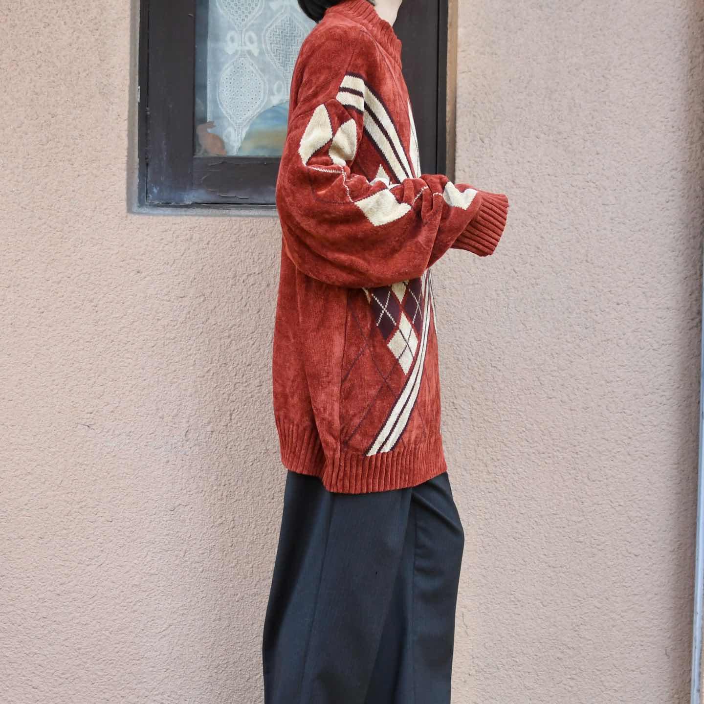 古着 オーバーサイズ アーガイル柄 モールニット デザインニット ニット レッド
