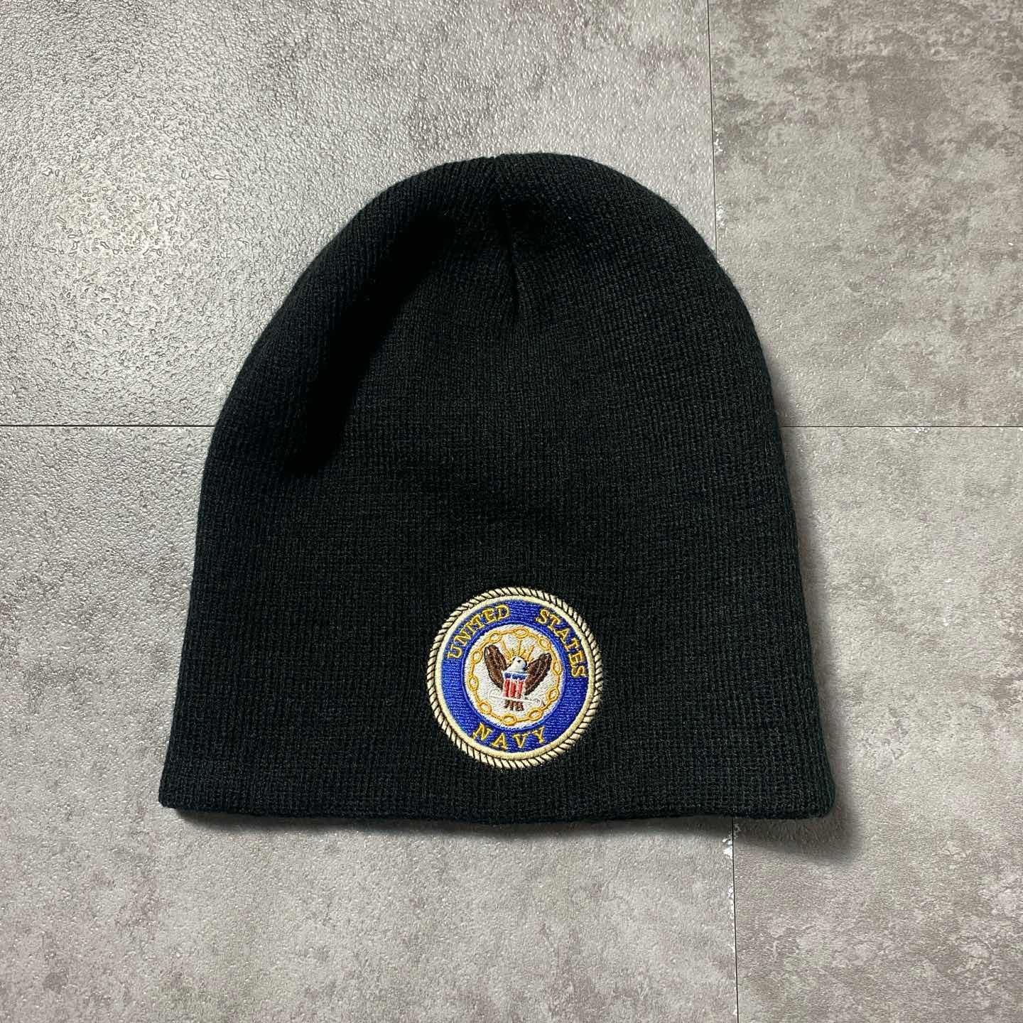 U.S.NAVY アメリカ海軍 刺繍ロゴ ブラック 黒 ニット帽 ビーニー