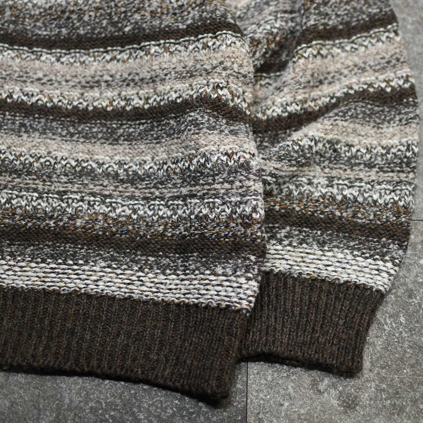 SIZE:- 着丈76cm 肩幅73cm 身幅74cm 袖丈61cm fabric/wool・acrylic made in italy 着用画像 173cm/58kg 個人的に惹かれた色使い、質感、そしてサイズ感。 アースカラーが好きな自分にとって、 其れを重ね合わせた地層のような編み方には 心躍りますし、意外にも様々な色の糸を 使用しているのもポイントです。 比較的ざっくりとした編み込みだからこそ、 落ち感のあるシルエットで 尚且つサイズバランスの整ったゆとりのある サイズ感なのが◎ サイズ選びが難しいと感じるカテゴリーですが、 中でも安心して手元に置きたいと感じた1着でした。 おすすめです。 ※撮影状況により、実物と多少色が異なる場合が ございます。 ※古着を取り扱っているため、気づかない汚れや ほつれ等がある場合がございます。 ※サイズは着用感で選んでおり、 表記サイズは説明欄の最初に記載しております。 古着 オーバーサイズ old vintage ヴィンテージ used 80's 90's アメリカ古着 ユーロ古着 POLO RALPH LAUREN Eddie Bauer OLD GAP LANDS' END ランズエンド LLBean エルエルビーン オールドギャップ エディーバウアー ラルフローレン ブルックスブラザーズ Brooks Brothers ベージュ 茶色 ニット などがお好きな方 #vintage #オーバーサイズ #old #used #90s #80s #古着 #ヴィンテージ #LLBean #エルエルビーン #EddieBauer #エディーバウアー #oldgap #オールドギャップ #LANDSEND #ランズエンド #NAUTICA #ノーティカ #ラルフローレン #POLORALPHLAUREN #ブルックスブラザーズ #BrooksBrothers #カーディガン #セーター