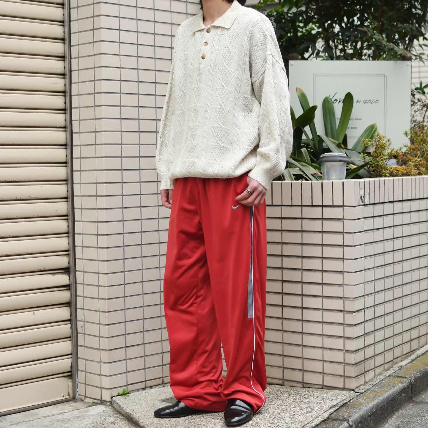 古着 NIKE サイドジップ トラックパンツ ワイドパンツ イージーパンツ 赤