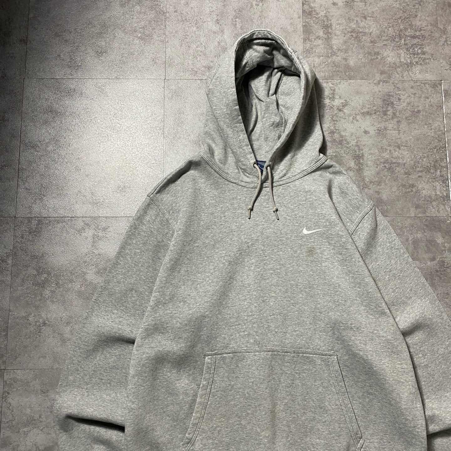 NIKE スウォッシュ 刺繍ワンポイント グレー スウェット パーカー フーディ