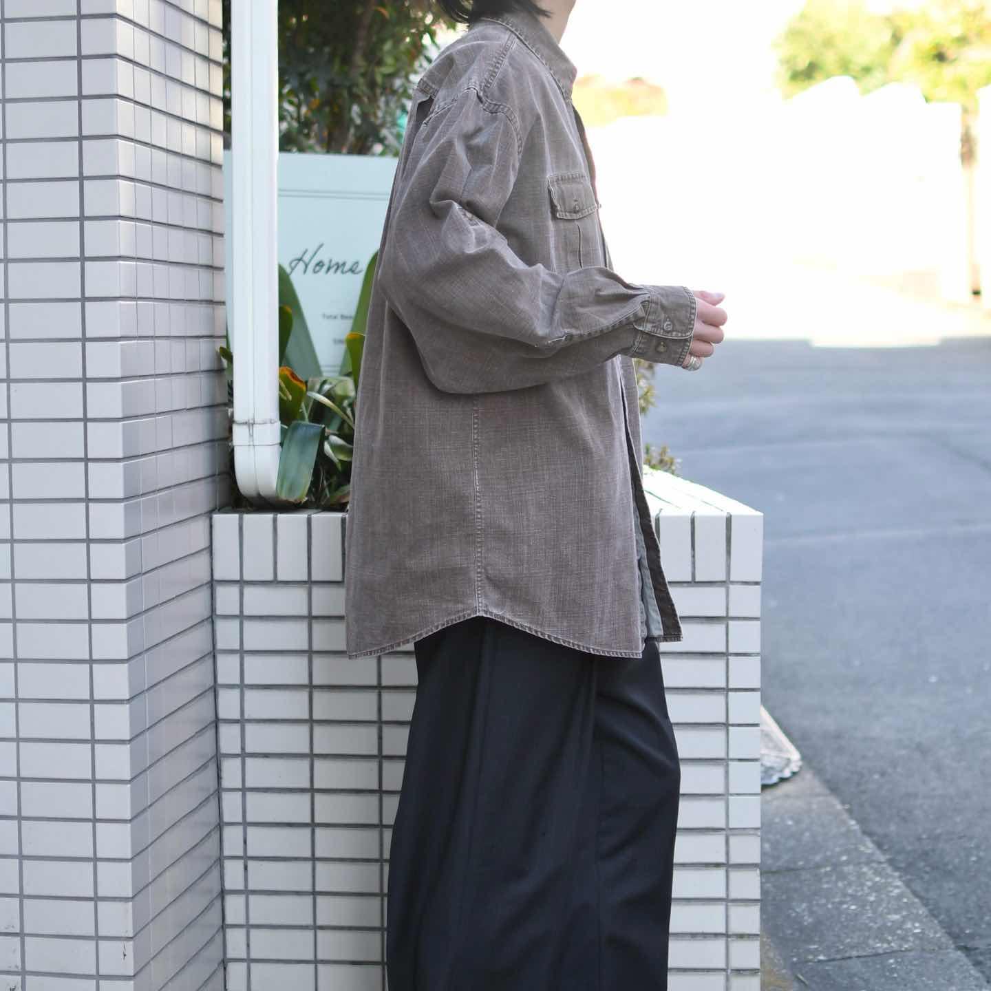 SIZE:XL-REG 着丈81cm 肩幅56cm 身幅68cm 袖丈61cm fabric/cotton 着用画像 173cm/58kg がしっとしたキャンバス地をシャツに落とし込み、 袖を捲り、留めることが出来るロールアップタブが 施されたシャツ。 程よく使い込まれたことで、生地から生まれる 雰囲気も昇華し、シャツとしてだけでなく Tシャツの上からガバッと羽織る ライトアウター代わりとしても活躍してくれるのでは ないでしょうか。 コーデが単調になりやすい薄手の季節、 シャツとして、羽織りとして、ハーフパンツと。 色々なコーデに落とし込んでみてはどうでしょう。 ※色味につきましては、物撮りを参考に お願いいたします。 ※フロントに軽度の汚れあり。 ※撮影状況により、実物と多少色が異なる場合が ございます。 ※古着を取り扱っているため、気づかない汚れや ほつれ等がある場合がございます。 ※サイズは着用感で選んでおり、 表記サイズは説明欄の最初に記載しております。 オーバーサイズ old vintage ヴィンテージ used 80's 90's アメリカ古着 ユーロ古着 POLO RALPH LAUREN Eddie Bauer OLD GAP LANDS' END ランズエンド LLBean エルエルビーン オールドギャップ エディーバウアー ラルフローレン ブルックスブラザーズ Brooks Brothers ワークシャツ 茶色 などがお好きな方 #vintage #オーバーサイズ #old #used #90s #80s #古着 #ヴィンテージ #LLBean #エルエルビーン #EddieBauer #エディーバウアー #oldgap #オールドギャップ #LANDSEND #NAUTICA #ノーティカ #ラルフローレン #POLORALPHLAUREN #BrooksBrothers #ワークシャツ #シャツ #長袖シャツ