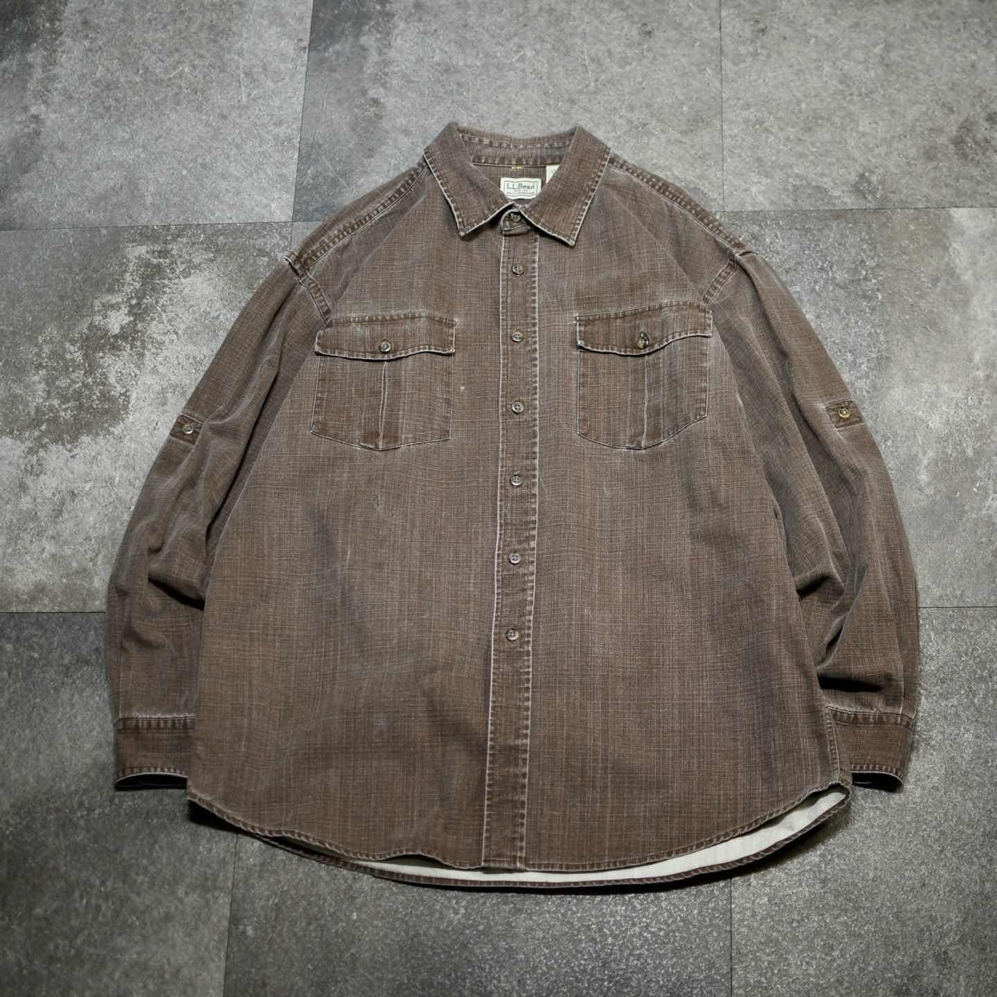 古着 LL Bean ロールアップタブ キャンバス シャツ 長袖シャツ ブラウン